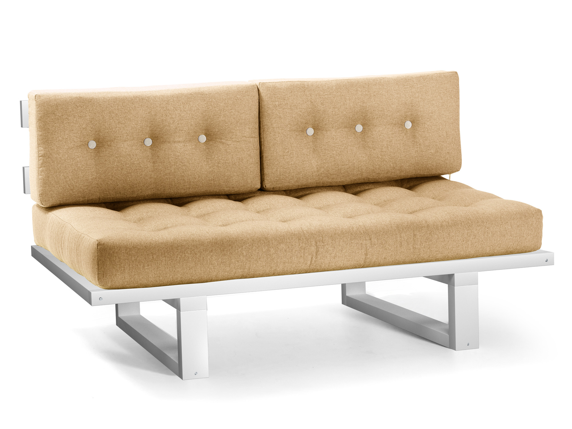 В комплекте с каркасом идёт матрас, две приспинные подушки.