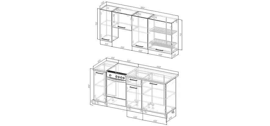 Кухня 1800 мм под отдельно стоящую плиту