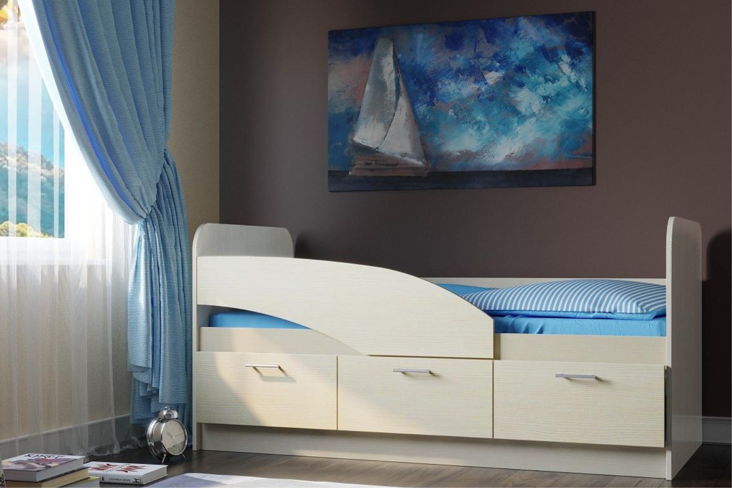 Отличный вариант детской кровати. Удобству способствует 3 вместительных ящика для белья и детских принадлежностей, а для большей безопасности имеется бортик.