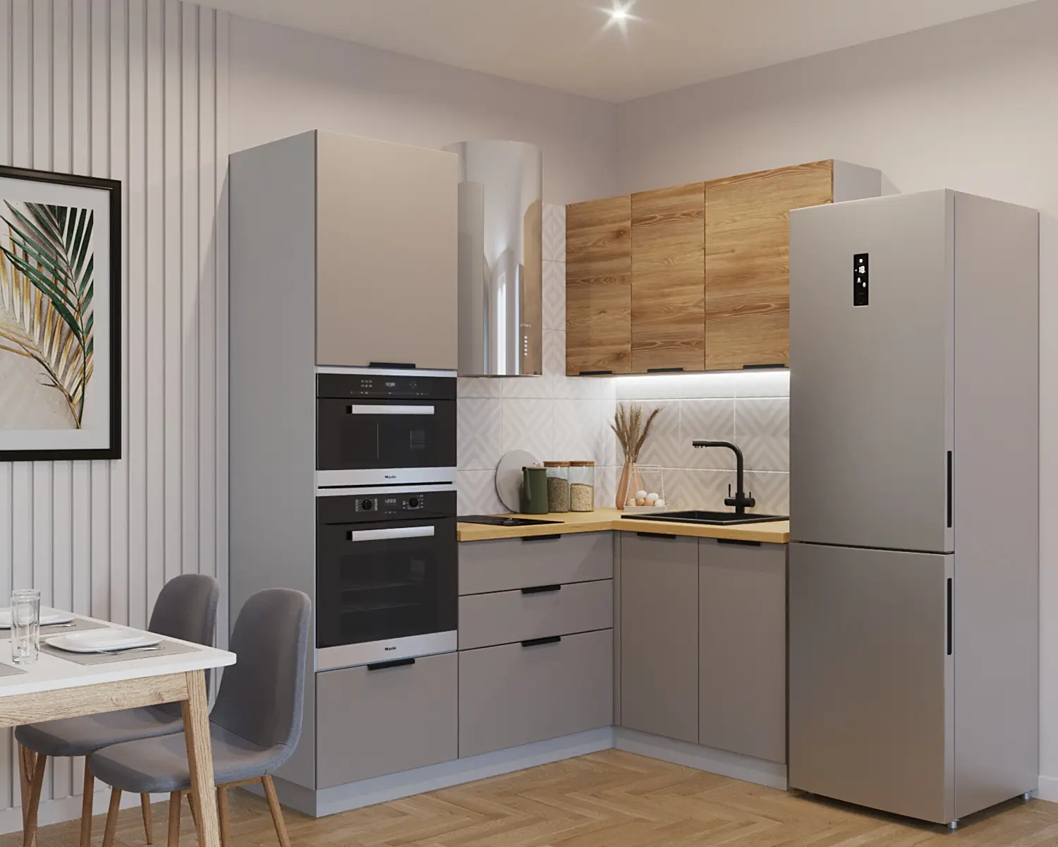 Магазин мебели «100Диванов» предлагает купить Кухонный гарнитур арт. 8 Обсидиан Рустик натур 2000х1400 в Когалыме по выгодным ценам от производителя с доставкой.
