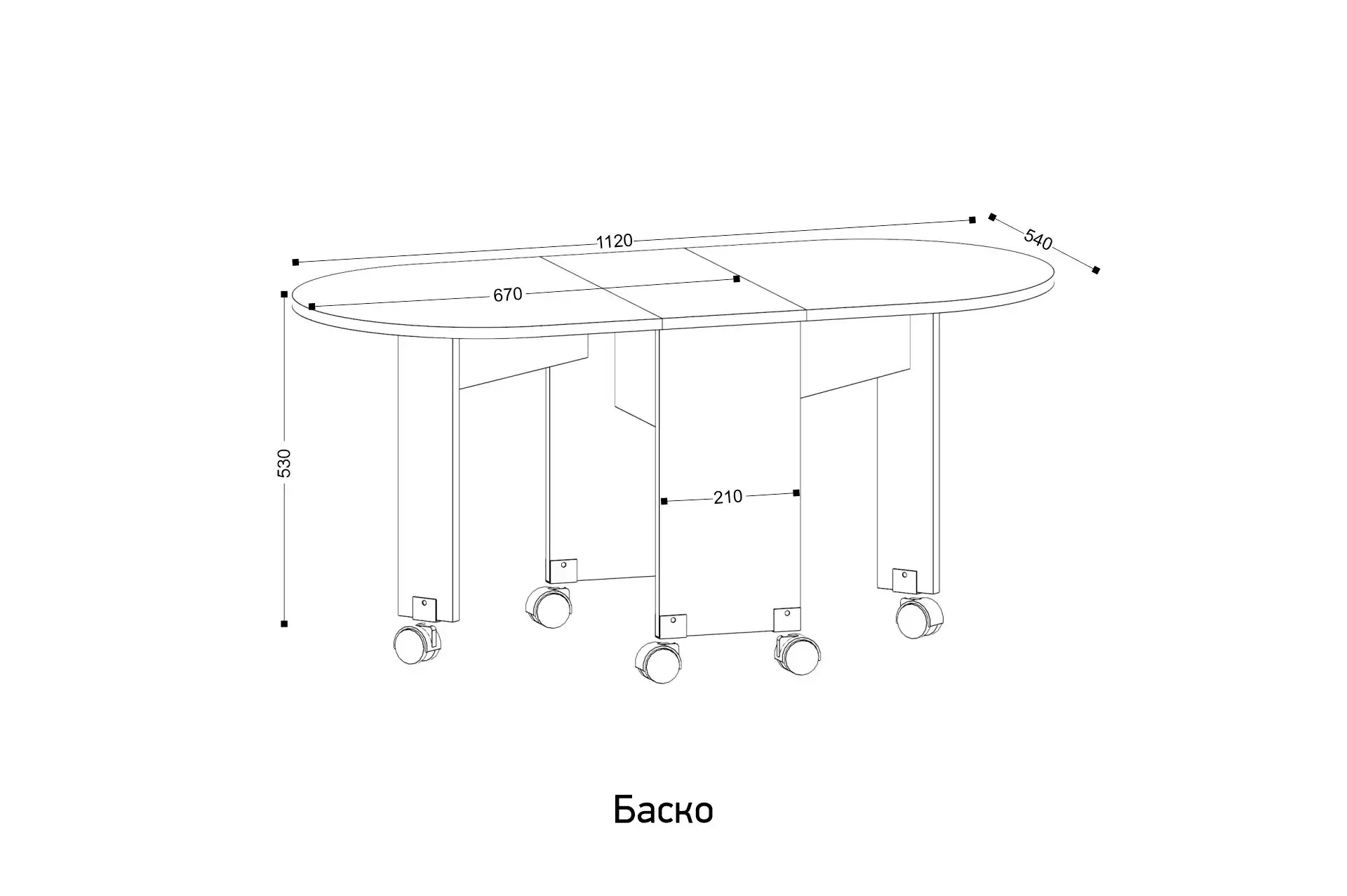 Габарит в собранном виде: ширина: 250 мм, глубина: 535 мм, высота 530мм