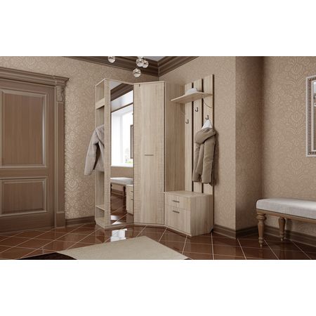 Элана" - воплощение современного дизайна и традиционного комфорта, которого покупатели ждут от мебельных производителей. Создатели данной прихожей пошли на маленькую хитрость для экономии пространства: "Элана" имеет очень интересное угловое расположение. В закрытых и открытых шкафах, по всей длине одного из которых расположено зеркало, поместится необходимое вам количество одежды, обуви, головных уборов, сумок и других необходимых вещей и важных мелочей. Количество шкафов зависит от желания заказчика.